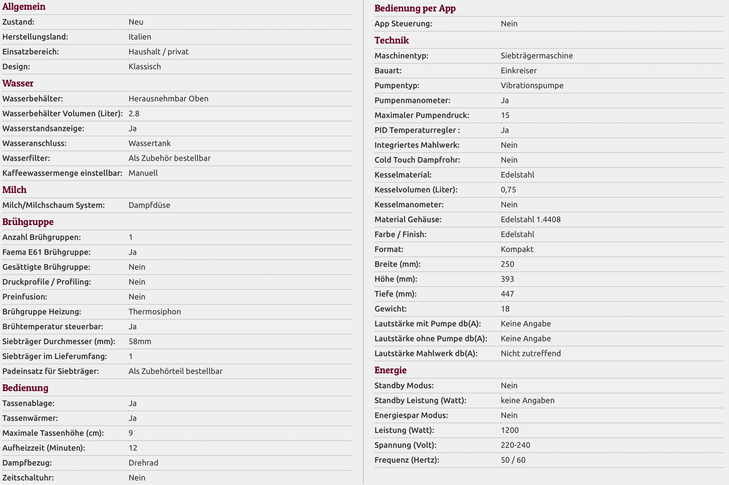 Die Espressomaschine hat einen Edelstahlkessel und besticht, wie alle ECM-Maschinen, durch eine herausragende Verarbeitung.