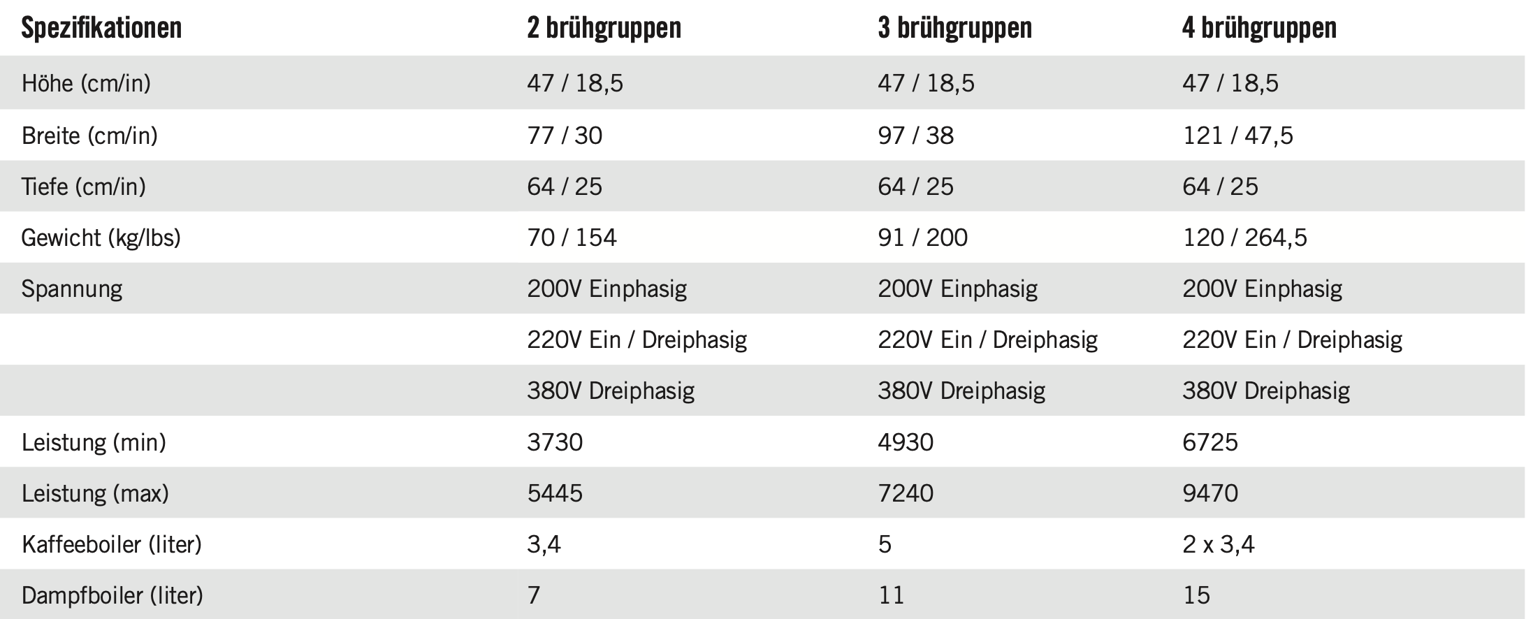 Die leicht veränderte Form der GB5 s hält weiterhin an ihrer Eleganz und Dynamik fest – rote Lilien in den seitlichen Paneelen erinnern an unsere Geschichte und den Ursprung in Florenz, während die neue Bedienerseite eine bessere Übersicht über die Brühgruppen ermöglicht.