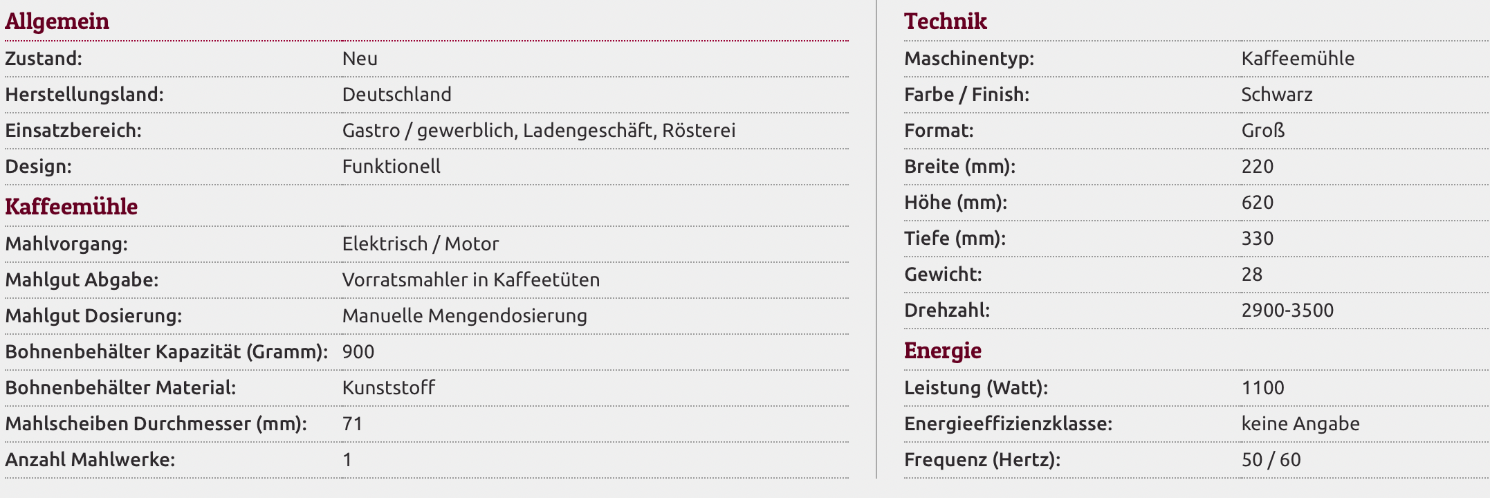 Für den Gewerbeeinsatz konzipierte Ladenmühlehoher Bedienkomfort